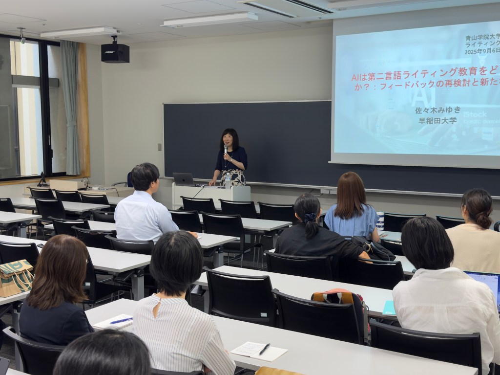 2025年9月6日,青山学院大学マルチリンガルライティング研究センター発足を記念して,佐々木みゆき先生(早稲田大学)をお招きし,「AIは第二言語ライティング教育をどのように変えるか?フィードバックの再検討と新たな可能性」と題してご講演いただきました。